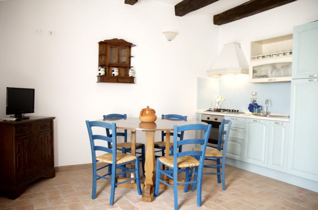 The doubleroom apartment on the first floor has a width of 40 square meters and has an exclusive private terrace of 16 mc. It is also composed of double bedroom, bathroom and living area with full kitchen and sofa bed.